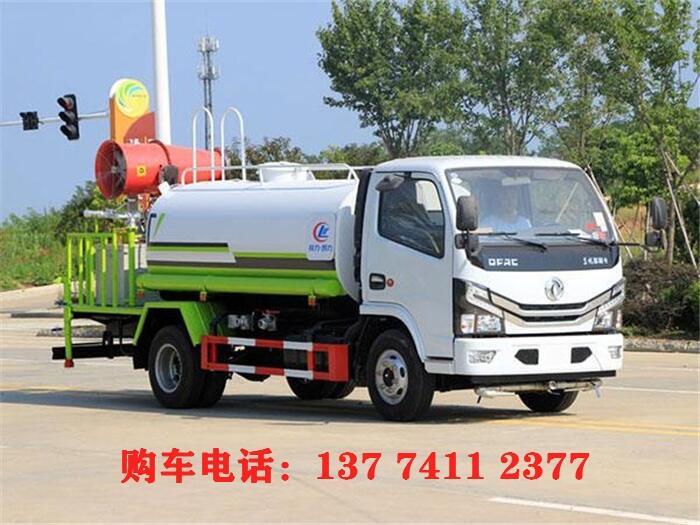 洒水车罐体材质为Q235国标碳钢,厚度为4MM,带大功率专用洒水泵,前冲、侧喷、后洒,带后工作平台和洒水高炮,高位花洒。