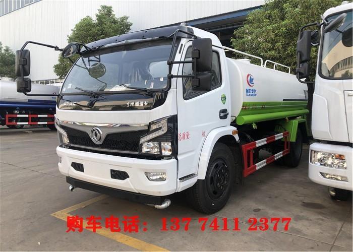 洒水车前冲(喷)后洒,带侧喷,罐体后带工作平台,平台上安装绿化洒水炮,洒水炮可旋转,可连续调成直冲状、大雨、小雨、毛毛雨,带安全护栏,配备全国质量评比名的杭州威龙大功率专用洒水泵,泵可自吸自排,安装过滤网,带消防接口,可通过消防栓进水,带自流阀,随车选装20米绿化卷盘,可喷洒农药,罐体金属漆。