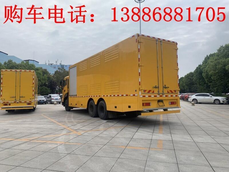 设备采用东风底盘改装,总质量12.5吨,发动机功率127kw,排放标准达到国五标准,3.8米轴距,带空调,方向助力,涉水深度600mm。