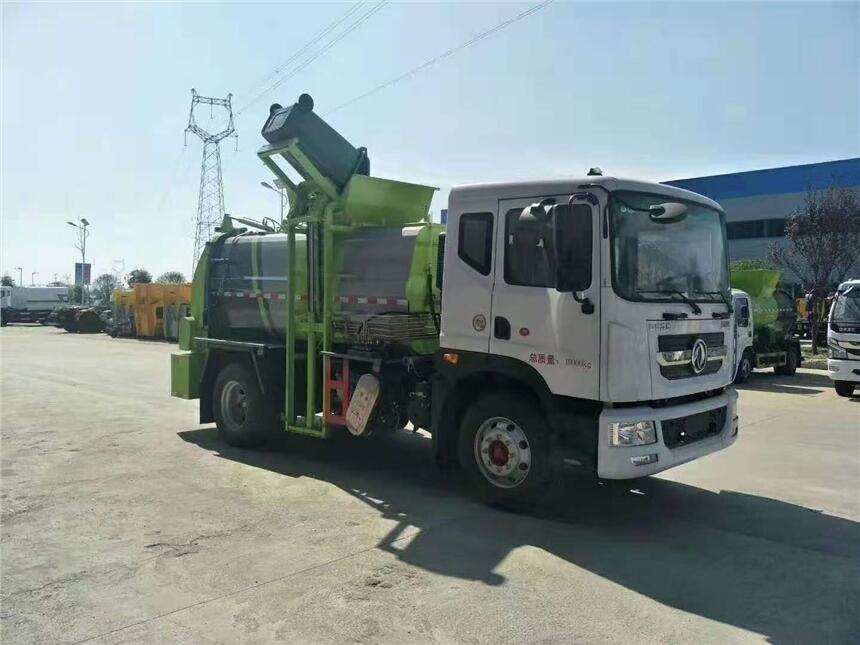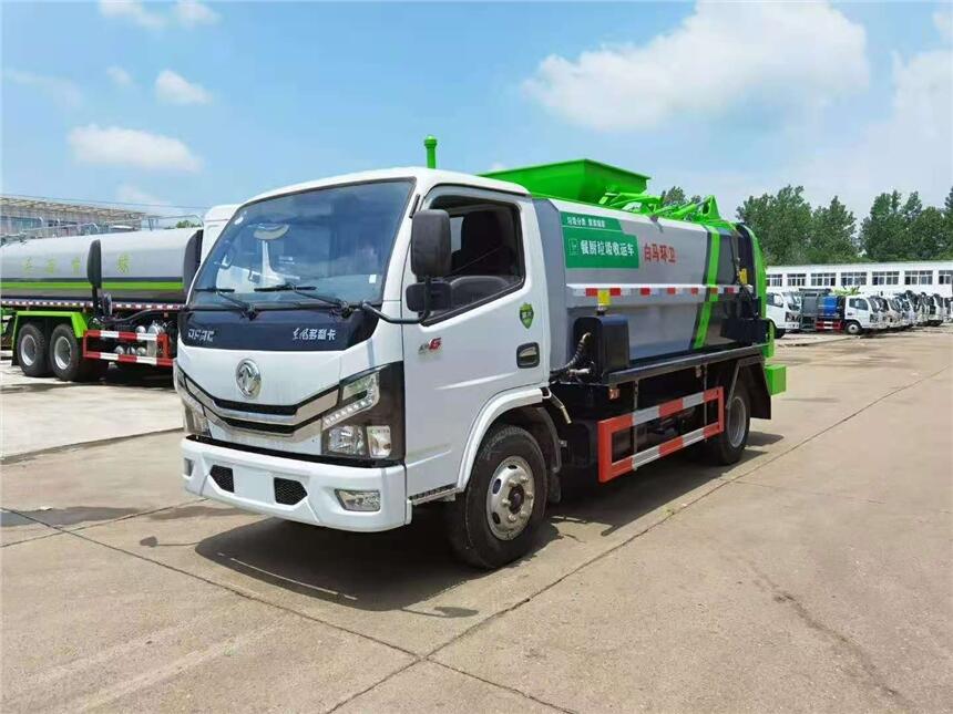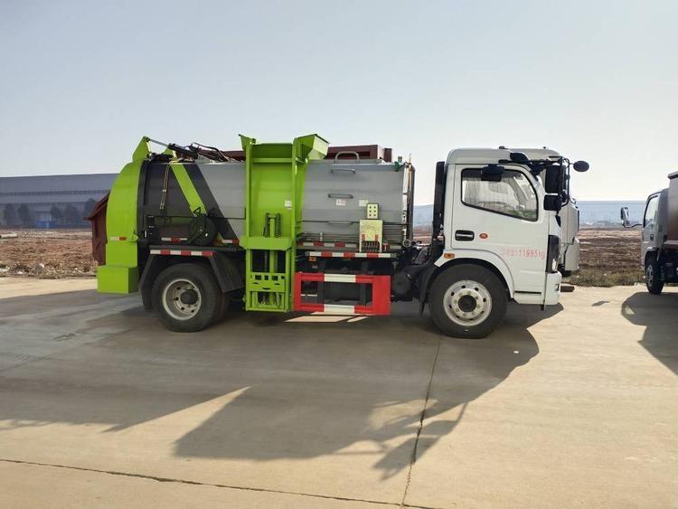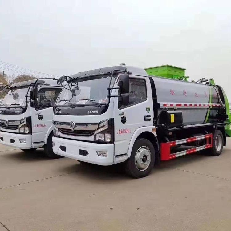 东风多利卡餐厨垃圾车,新款宽体驾驶室,国六柴油发动机,6档变速箱,7.50R16钢丝胎带备胎,汽刹制动,带原厂ABS,带刹车自动调整功能。全新款式箱体工艺,有效容积5立方米,车身右侧配液压挂桶提升机构,可挂国标120/240升垃圾桶,液压完成提桶倾倒作业,尾门为液压开启锁闭装置,可保证滴水不漏,箱体内部设有液压推板,可装垃圾推出卸料,带固液分离装置,标配液压马达带高压柱塞泵,配移动高压清洗枪。选装密闭式绞龙卸料装置、选装不锈钢材质箱体、选装罐内加热装置。