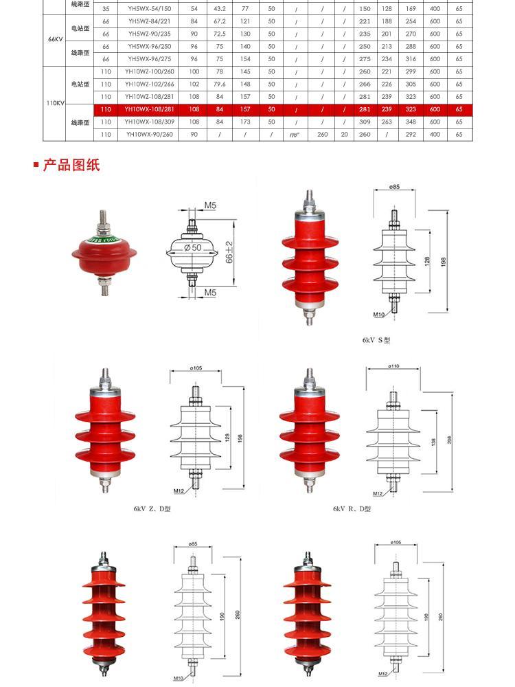 YH10WZ-108/281 HY10WZ-108/281复合外套氧化锌避雷器110KV 品牌 | 安徽希然电气 | ||