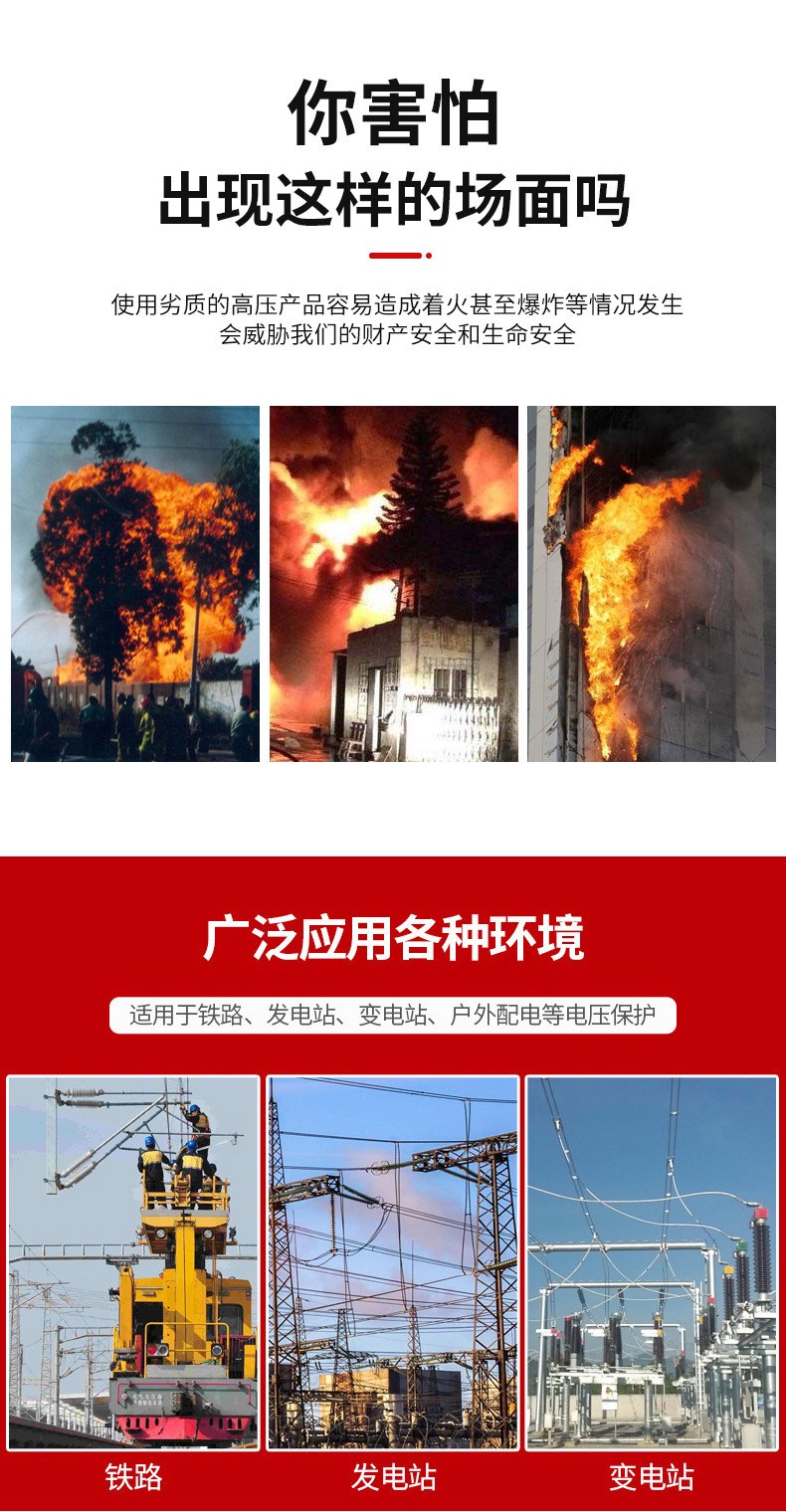 变压器高压电线瓷套避雷器HY10CX-108/281不锈钢触头110KV 材料 | 橡胶 | ||