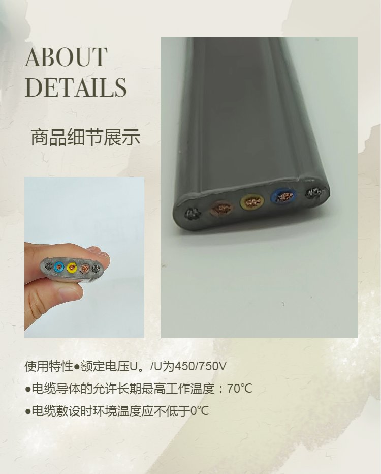 适用于电梯内部、电动门、拖链等作随行悬挂电缆。