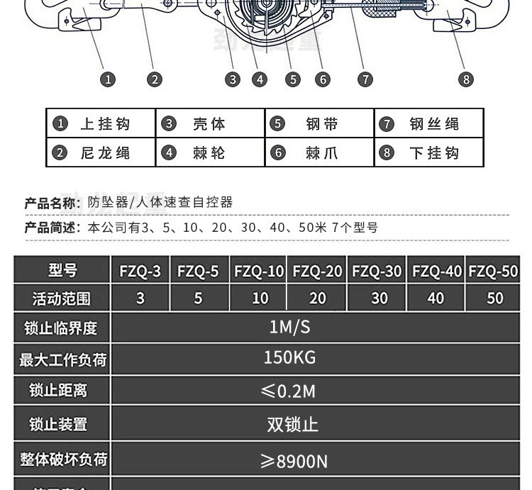 高空速差防坠器施工升降机塔吊带式电梯自锁器 20米/10米/30米/5米 型号5米
