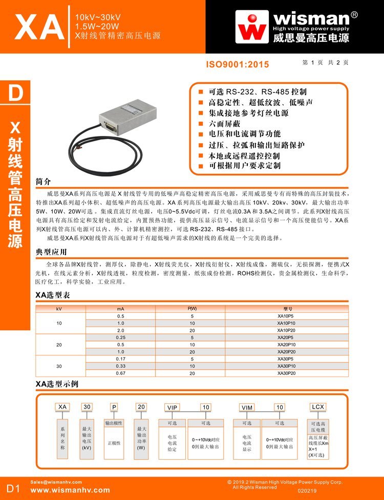输出:10KV、20KV、30KV、3种最高电压输出可选,5W,10W,20W,3种输出功率可选。