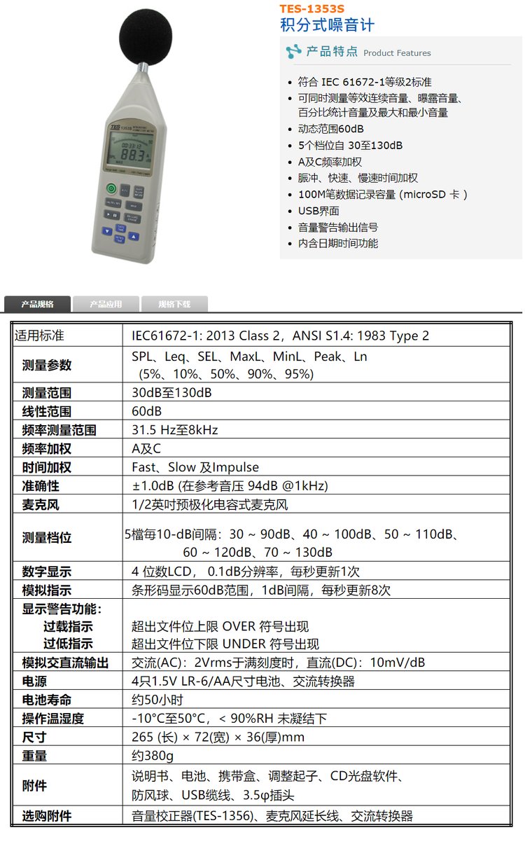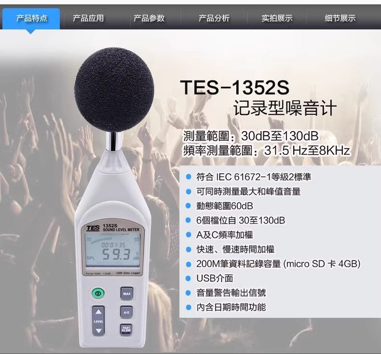 泰仕TES数字噪音计分贝仪声级计TES-1352S/积分式TES-1353S 品牌 | 泰仕TES | ||