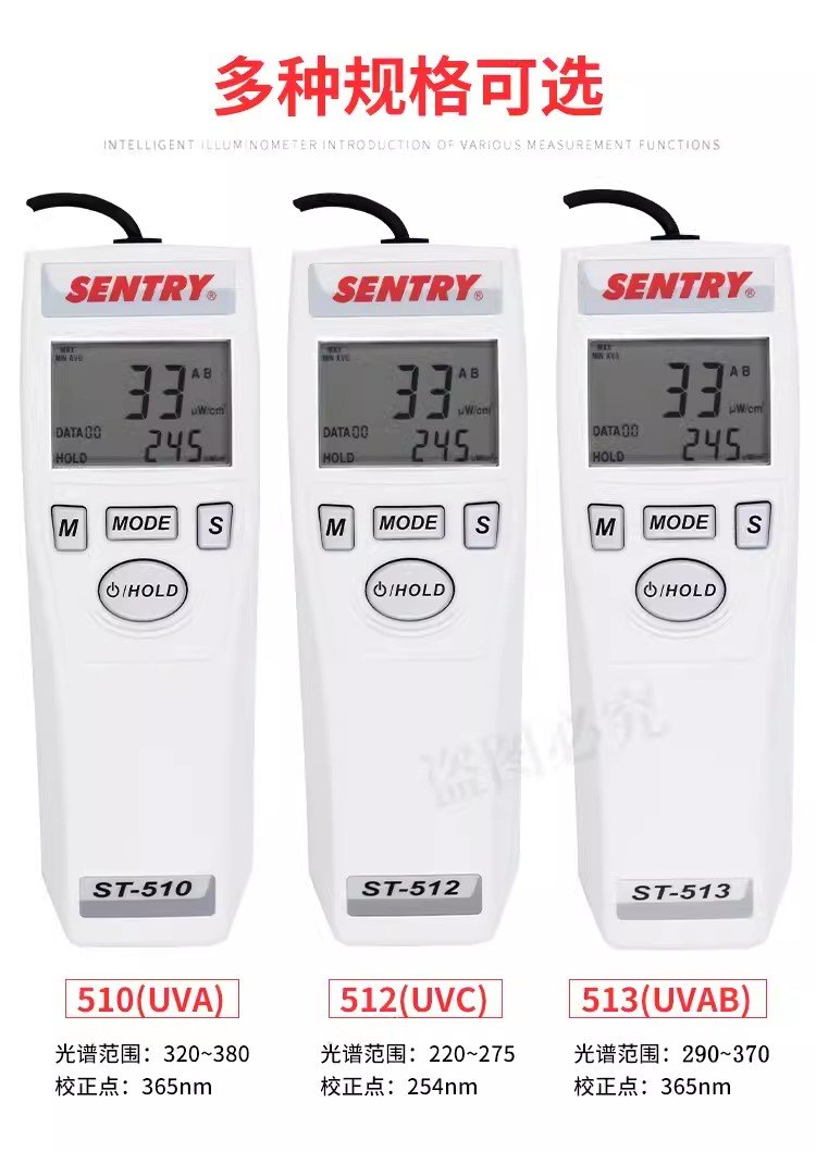 台湾先驰ST510/512/513紫外线强度照度计UVC紫外线消毒灯检测仪 品牌 | 先驰SENTRY | ||