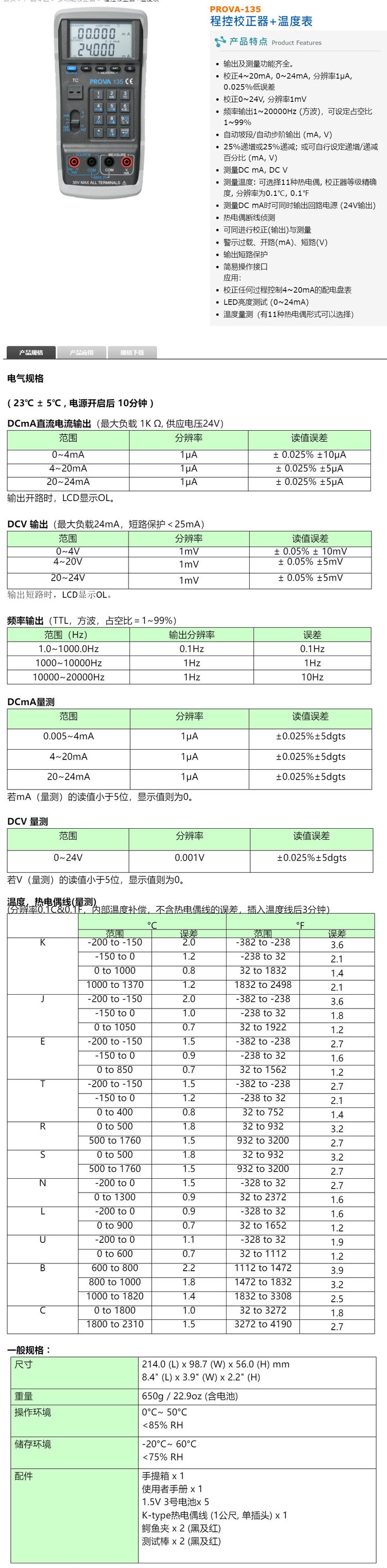 PROVA-133 | 电压电流频率温度信号产生器 | ||