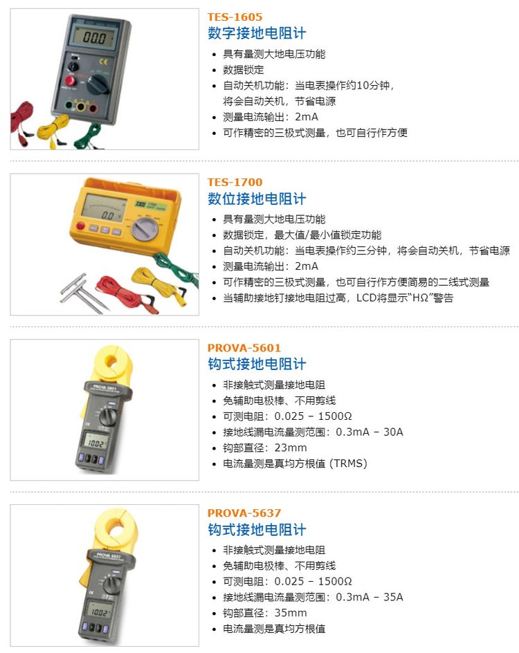 泰仕TES-1605/TES-1700接地电阻测试仪高精度打桩式接地电阻表 品牌 | 泰仕TES | ||
