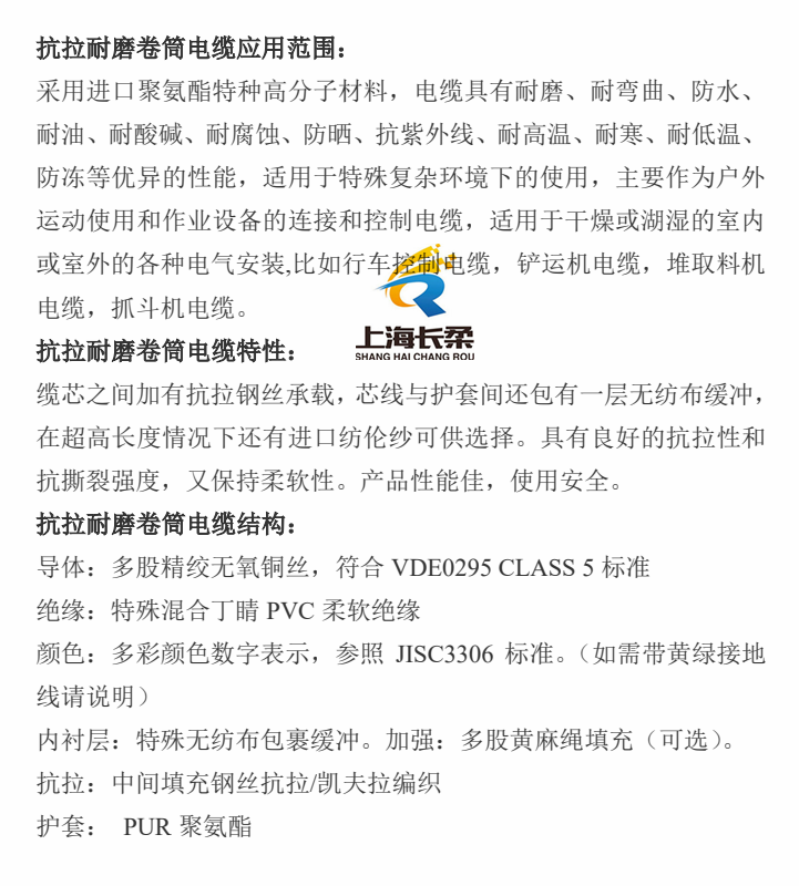 KPJT电动平车电缆CRC-TRCQ4X2.54X4平板车抗拉耐磨聚氨酯卷筒电缆