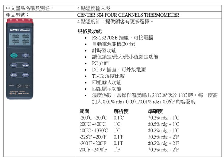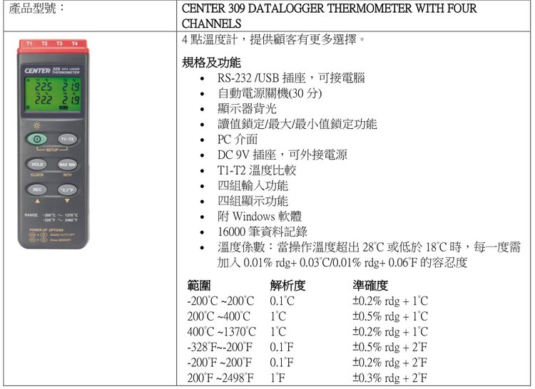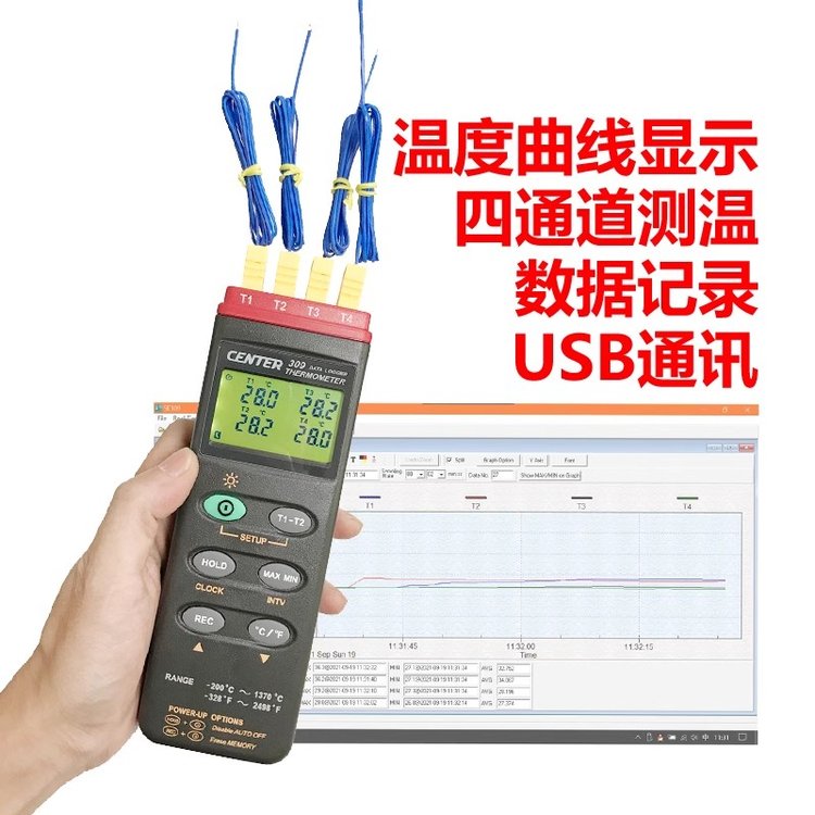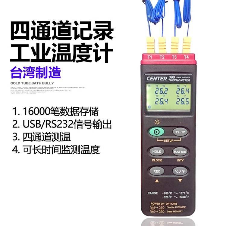 台湾群特CENTER-304/CENTER-309四通道热电偶温度计记录仪测温仪 品牌 | 台湾群特CENTER | ||