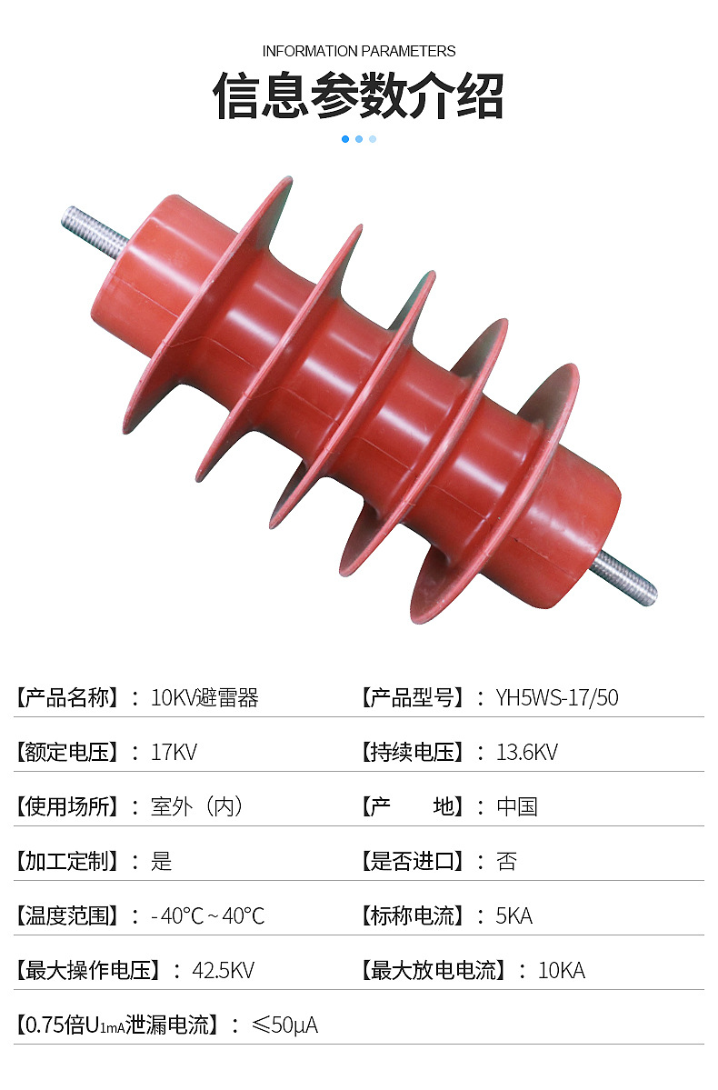 高压氧化锌避雷器17/50复合硅胶 10kV配电型线路型 是否支持加工定制