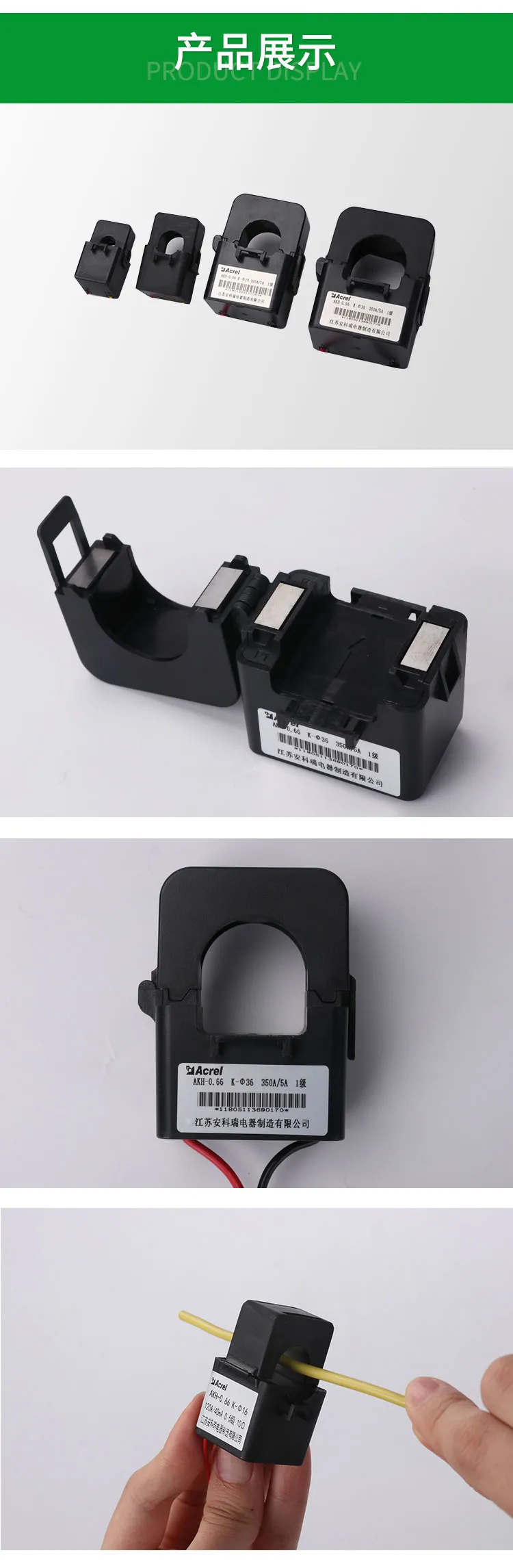 安科瑞 开口式电流互感器 卡扣式安装 UL认证 AKH-0.66/K-φ24 300/5 型号 | AKH-0.66/K-φ24 300/5 | ||