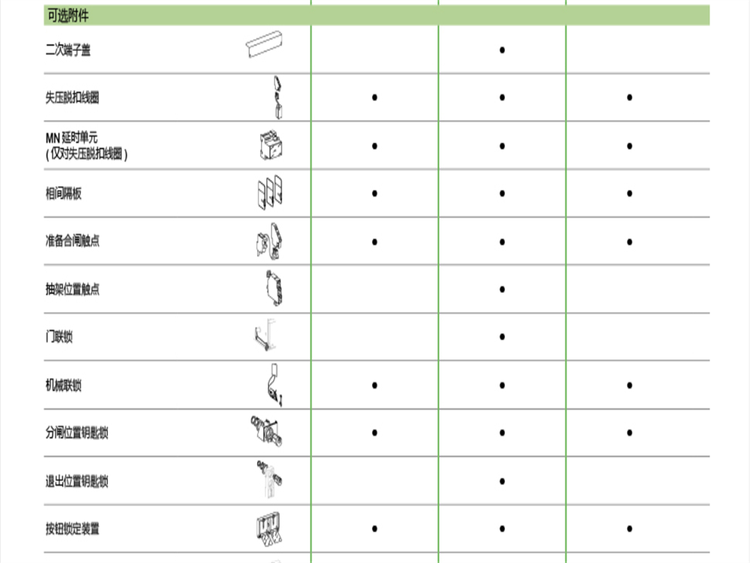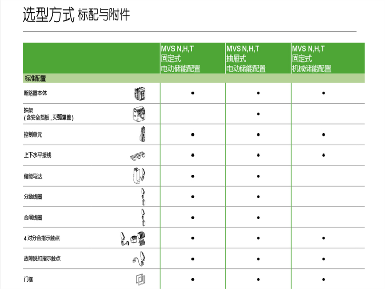 标配:固定式电动标配:MCH储能马达、MX分励线圈、XF