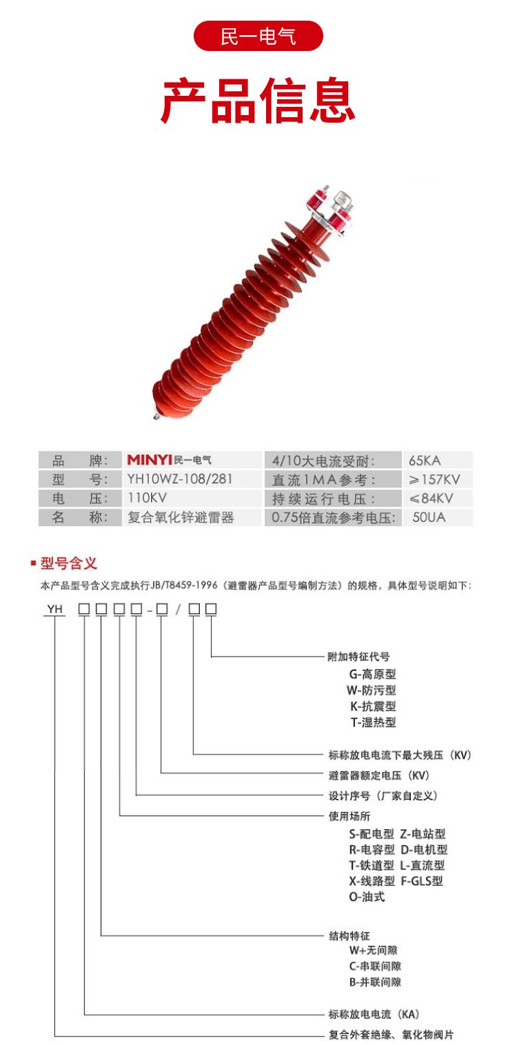 YH10WZ-100/260 氧化锌避雷器批发 性能稳定 源头厂家供应 是否现货 | 是 | ||