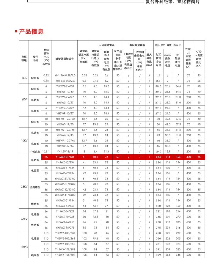 YH5WZ-42/134 复合氧化锌避雷器 耐污耐腐 一站式供应 应用领域 | 电力电站等 | ||