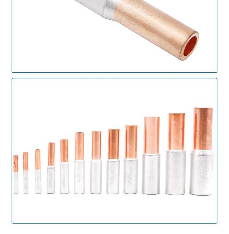 在电力传输连接及配电装置中经常需要将铝电缆与铜电缆连接,为避免铜电缆与铝电缆直接连接时产生的电化腐蚀,通常选用铜铝连接管进行连接。目前市场上的铜铝连接管大都是将铝制端与铜制端对接后焊接,其结构如图1所示,这种铜铝连接管用铜量大,制造成本高;同时,铜铝过渡截面小,安装在线路上长期承受导线对铜铝过渡面的拉力,对铜铝过渡焊接面形成破坏,导致产品在使用过程中电阻过大、温升过高,且易产生断裂现象,影响电力系统的正常运行。