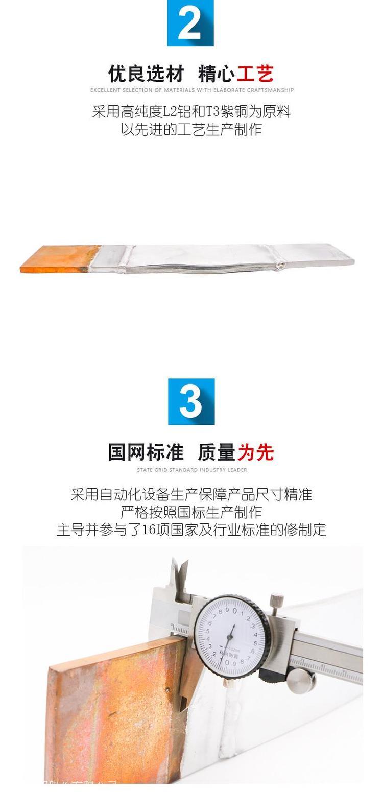 母线伸缩节是用以补偿母线因温度变化而引起的伸缩的金具。铝母线伸缩节通常用0.5mm的铝箔叠成与母线相同的截面,两端焊以接线板而成。铜母线伸缩节则用铜编织软线与铜接线板焊接而成。