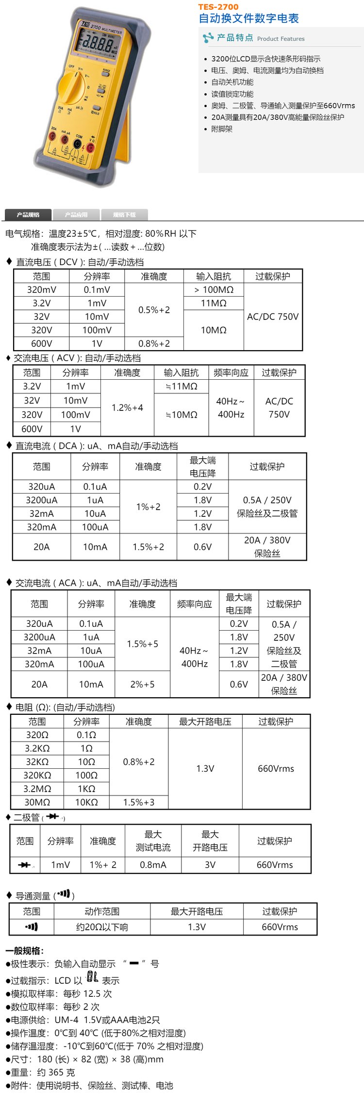 泰仕TES-2700/TES-2712数字LCR万用表高精度多功能万用电表 品牌 | 泰仕TES | ||