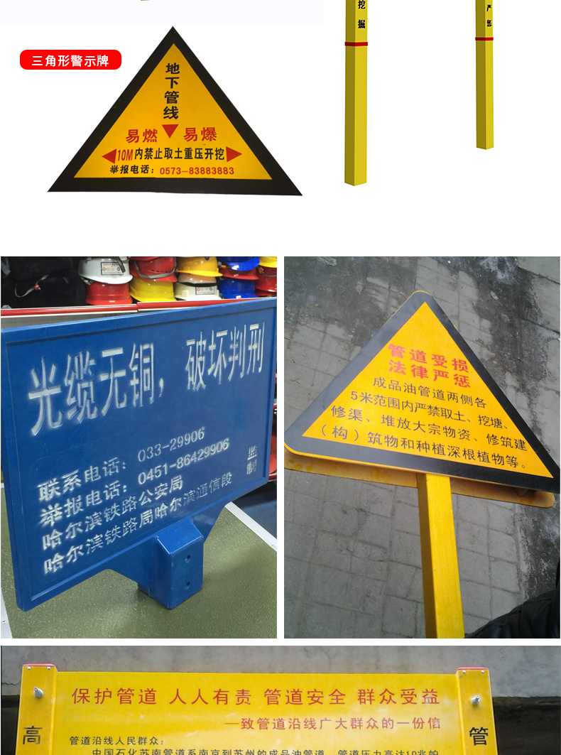 标识警示牌地埋水管光缆电缆通信电力禁止开挖高压危险严禁施工