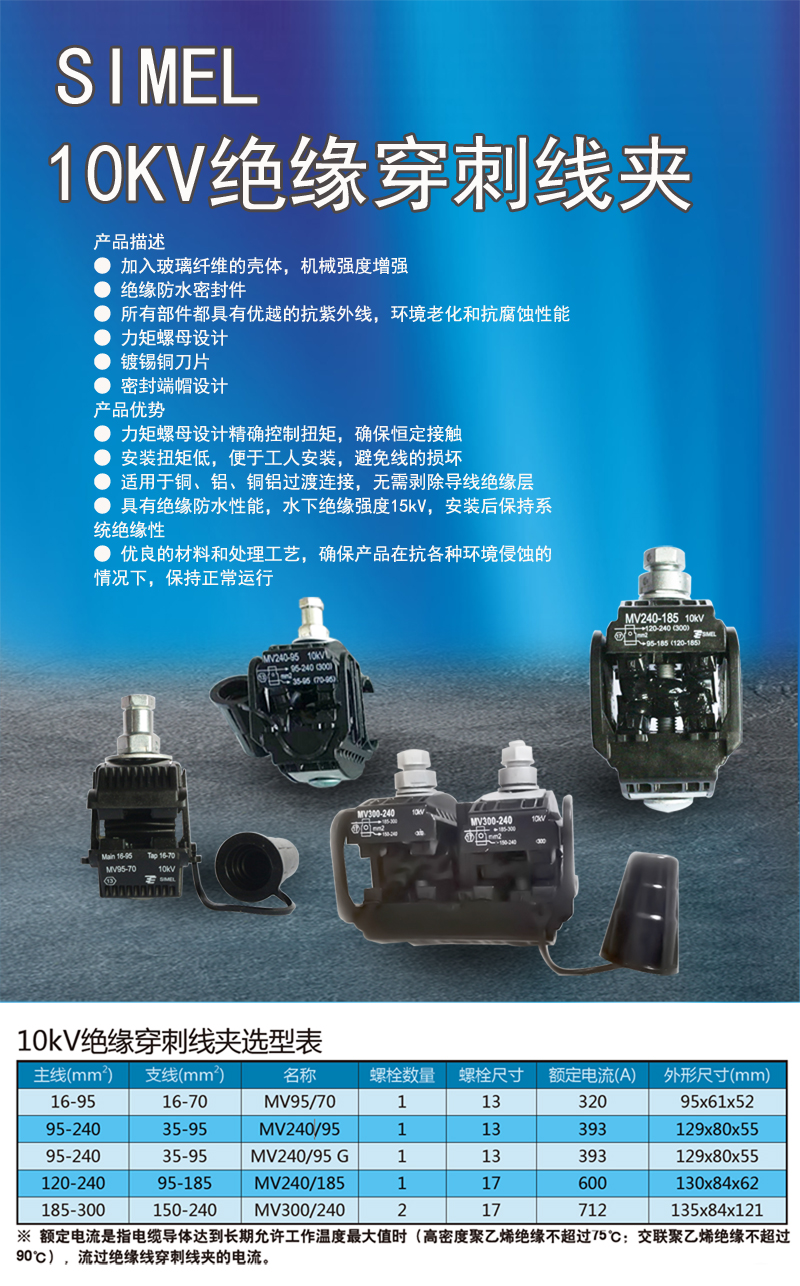 泰科斯麦尔SIMEL1KV低压绝缘穿刺线夹 接地线夹KZ2-150 MV-300/240 是否支持加工定制 | 否 | ||
