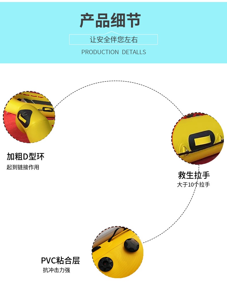 适合冰面、水面救援用,可折叠,底部坚硬耐磨,组装操作简单,使用方便。船体两端为龙门式设计,救援时船身可越过被困人员头部,救援人员无需脱离船心位置,可直接实行拖拽救援。