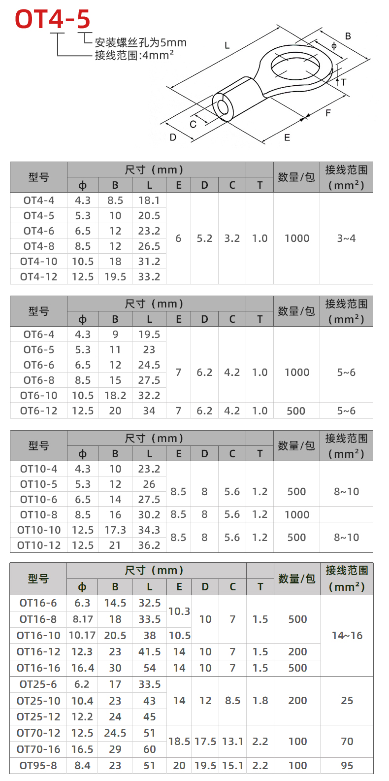 OT圆形裸端子304不锈钢铜鼻子OT16-8镀银O型冷压线鼻子宇益电气