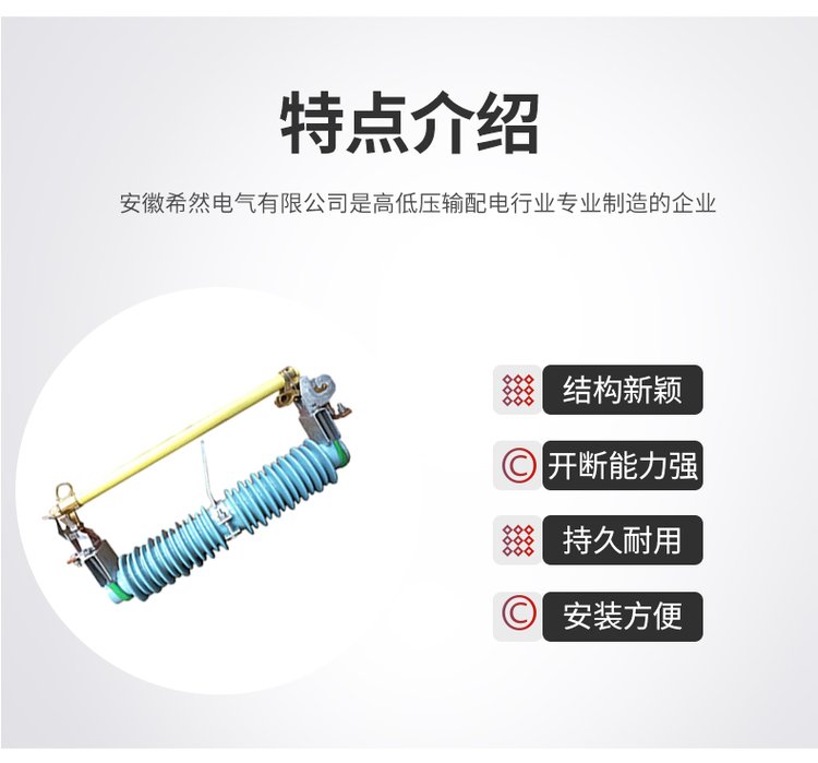 希然电气 做工细致 跌落式熔断器 电力系统使用 PRWG2-35/100A 适用场所 | 电力工程 | ||