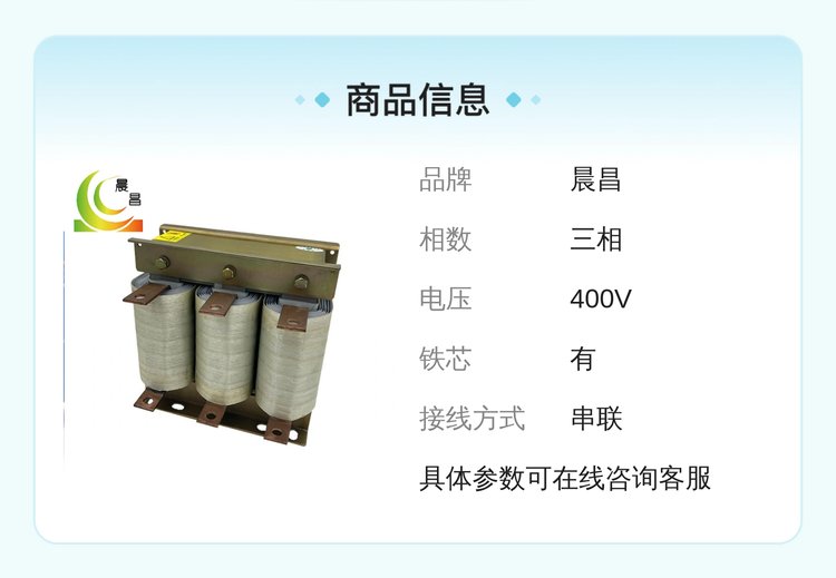 晨昌ACL-1400A/4.4V三相铁芯干式电抗器抑制谐波 品牌 | 晨昌 | ||