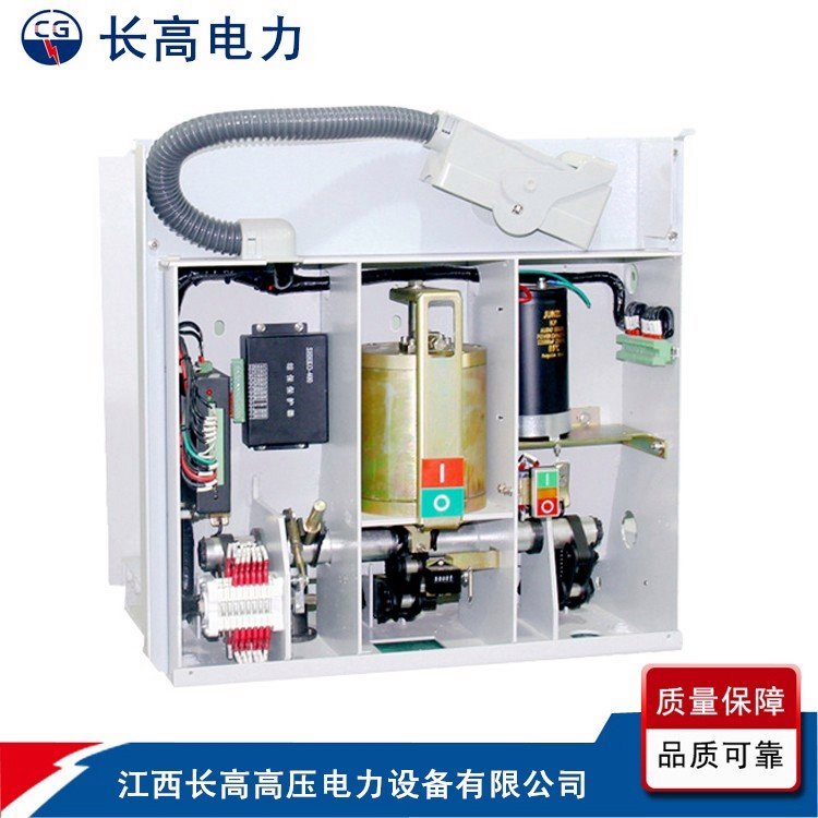 断路器配用中间封接式陶瓷或玻璃真空灭弧室,采用铜铬触头材料,杯状纵磁场触头结构,其触头的电磨损速率小,电寿命长,触头的耐压水平高,介质绝缘强度稳定,弧后恢复速度快,截流水平底,开段能力强。