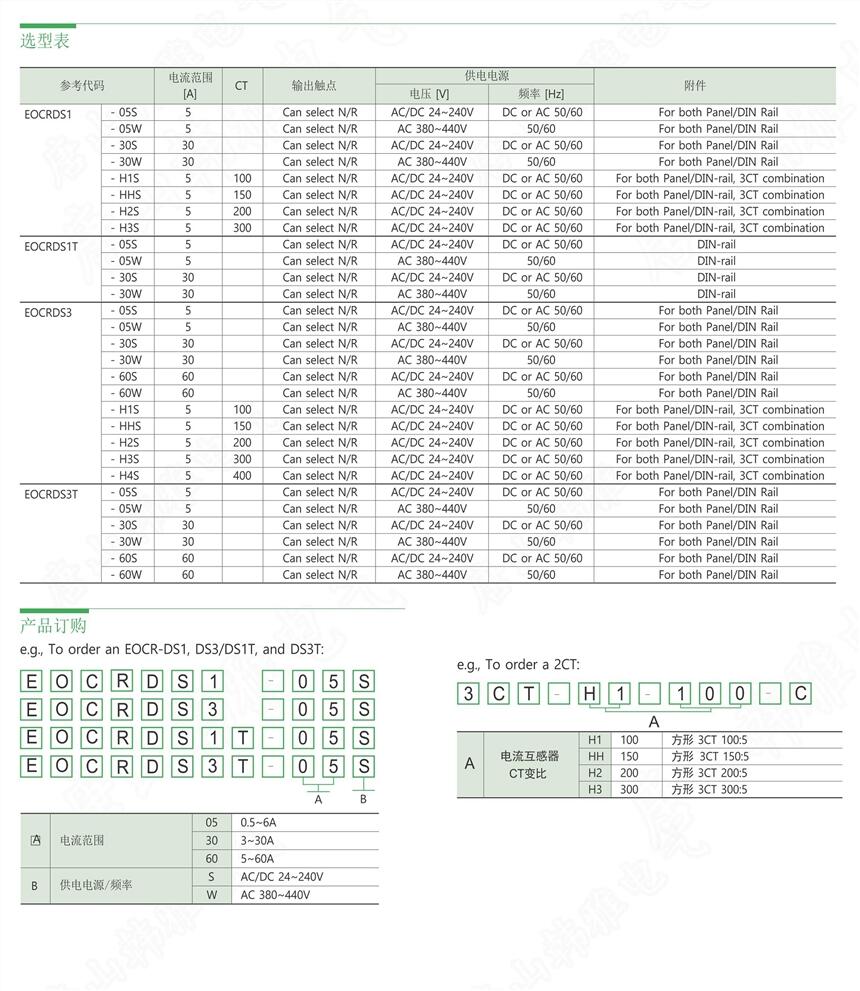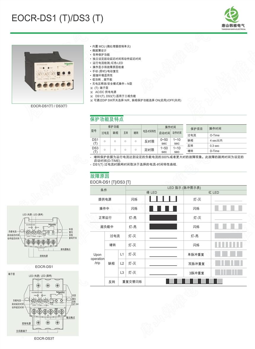 EOCR韩国三和生产的高科技电子式智能电动机保护器系列产品,具有设计精巧、动作可靠准确,曾多次荣获国际、国内大奖,在世界几十个国家申请专利,深受广大用户的信赖。产品性能:启动、过载延时可设定;短路、缺相、过流、欠流、相不平衡、逆相均可保护、设定;设备运行时间及运行时间累计,均可显示;故障原因可存储、显示;触敏键自检、复位。