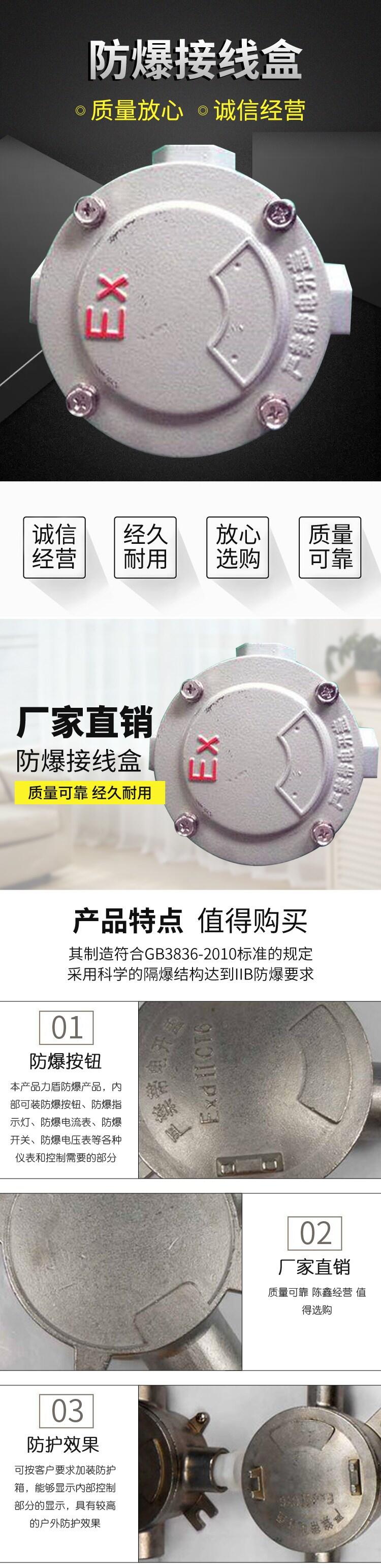 力盾防爆电气JX系列防爆接线箱是铸铝合金压铸成型有着良好的防爆性能,采用了隔爆型防爆原理进行防爆,可将设备在正常运行时,能产生火花电弧的部件置于隔爆外壳内,隔爆外壳能承受内部的爆炸压力而不致损坏,并能保证内部的火焰气体通过间隙传播时降低能量,不足以引爆壳体外的气体;