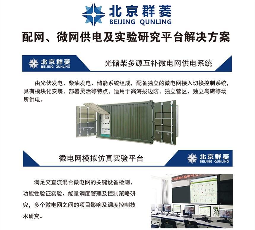 北京群菱专注于微电网研究试验平台的开发,针对微电网建设的难题,推出多个微电网实验平台: