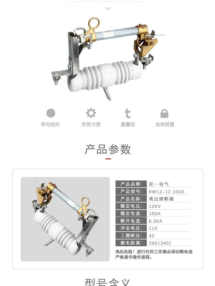 民一RW12-12/100A-200A高压户外跌落式熔断器令克开关保险10-12KV