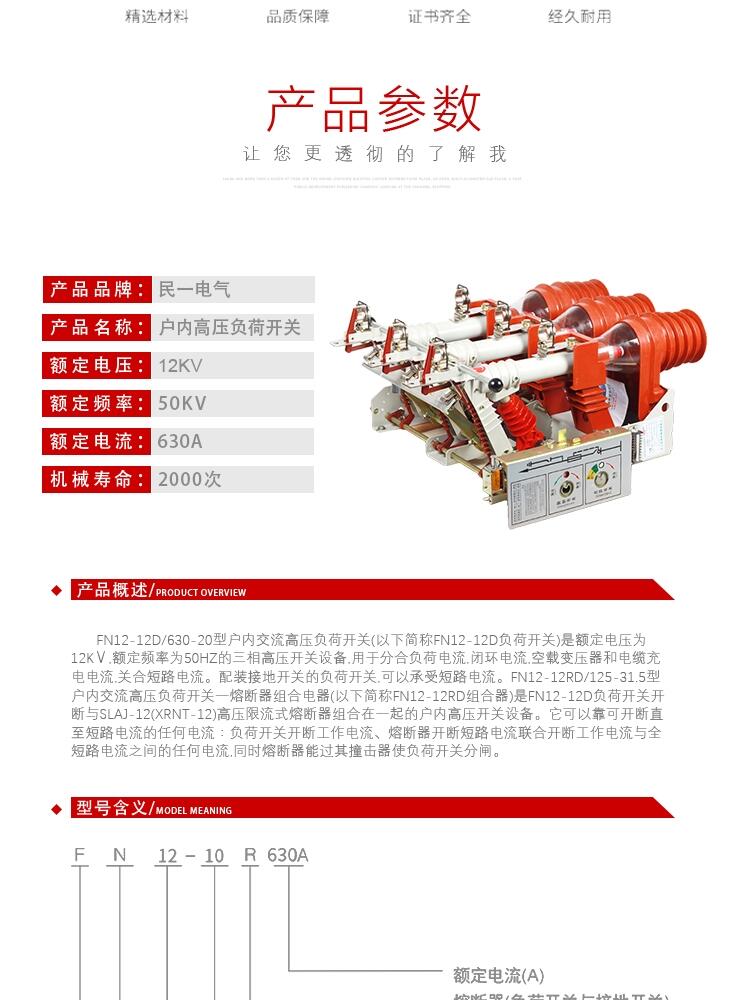 民一电气 压气式FKN12-12/630户内高压负荷开关挂墙式负荷开关