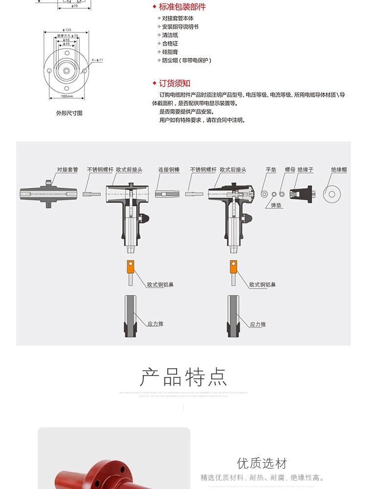 厂家供应DJTG-12-630电缆分支箱专用欧式对接套管