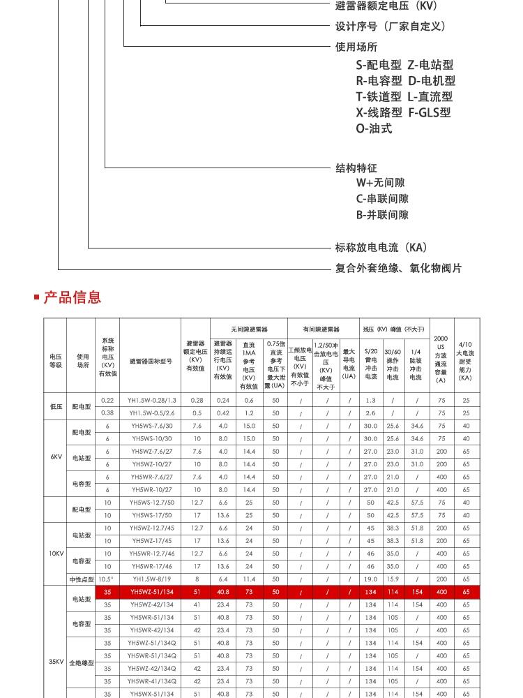 YH5WZ-42/134JQ、YH5WZ-51/134JQ、YH5WZ-52/134、YH5WZ-52.7/134、YH5WZ-54/134;YH5CR-42/124J、YH5WR-42/134JQ、YH5CZ-42/124J、YH5WR-51/134JQ;YH5CX-42/120、YH5CX-42/150、YH5WR-51/128、YH5WX-51/134、YH5WX-54/142、YH5WX-54/150、YH5WX-57/150、YH10WX-57/170、Y1.5W-33/85。
