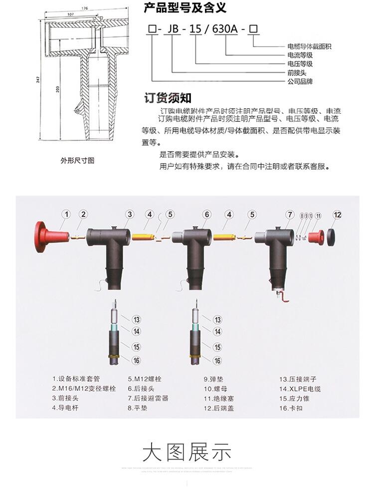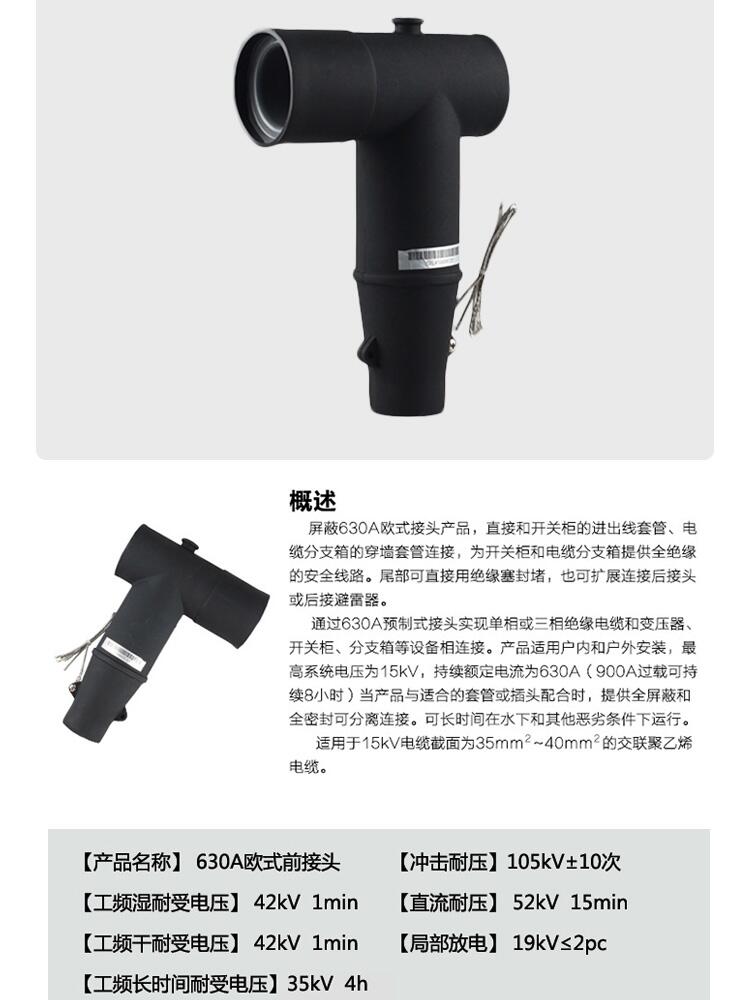 欧式电缆分支箱JB-12/630前插头前拔头T肘型可触接头630A10KV民一