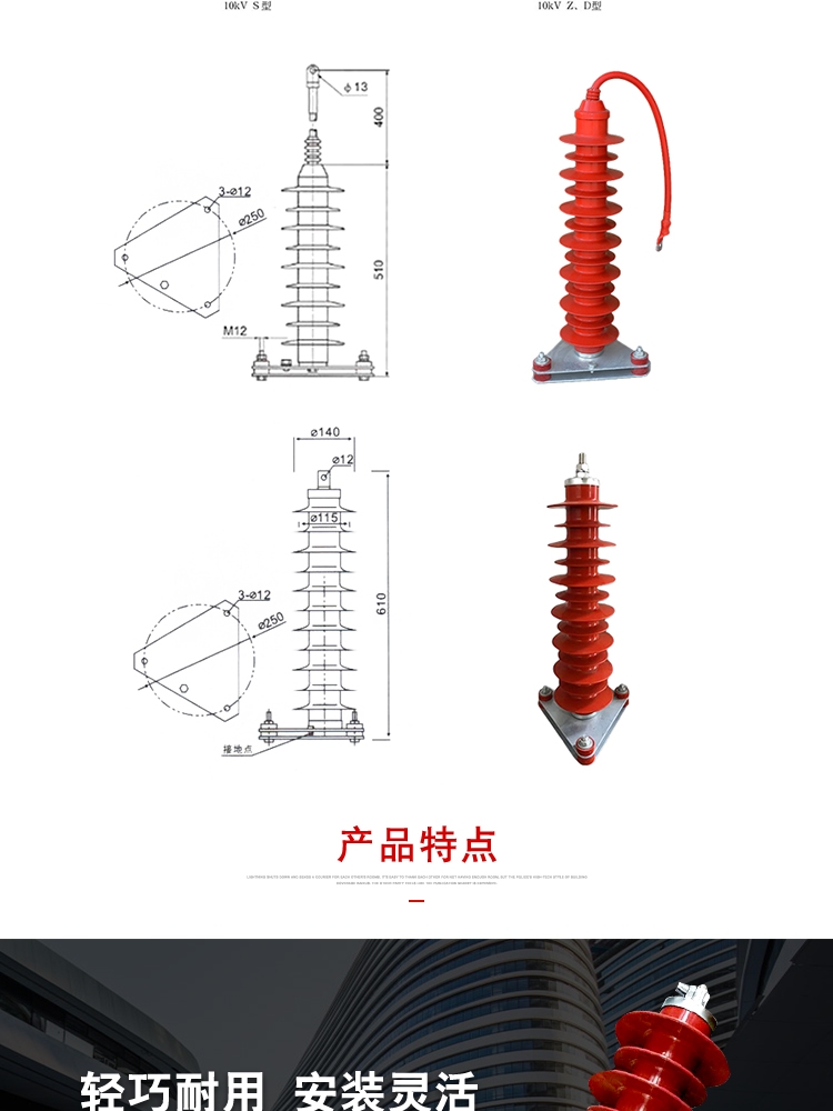 (3)?不能将避雷器作为承力支持绝缘子使用,应尽量靠近被保护设备安装,以减小距离对保护效果的影响;LXQ-35?