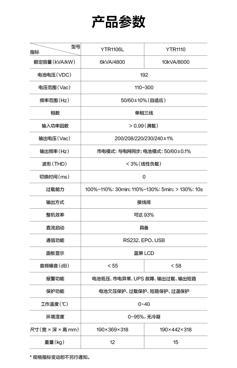 • 规格:YTR1110