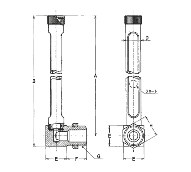 ?本体は真鍮、クロムメッキ仕上げ、シールパッキンに耐熱、耐薬品性に優れたフッ素ゴム、ゲージ管にはパイレックスガラスを使用しています