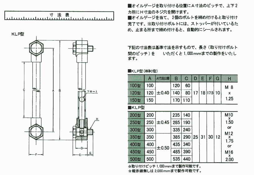 日本協和KYOWA油面计KLP-100-B-M8-S