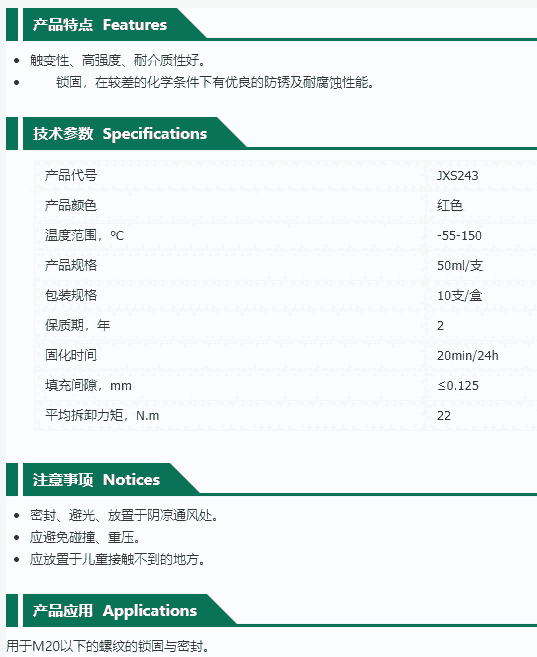 江西欣盛螺纹锁固剂 JXS243 50ml支