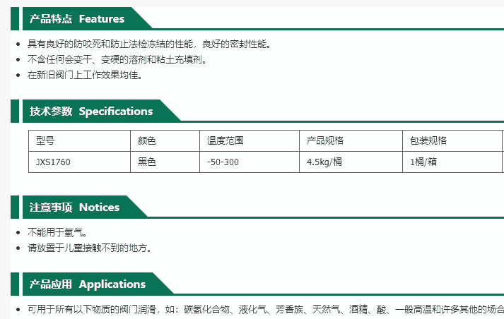 江西欣盛阀门润滑剂JXS1760 4.5kg桶