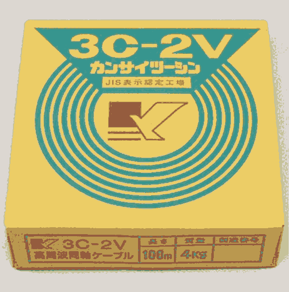 用途屋内引込み線、屋内配線、監視や防犯カメラ等、信号回路や高周波機器間の接続に使用。 ケーブル3C-2V 耐電圧1000V/分 材質(シース)PVC(塩化ビニル) 材質(絶縁体)PE(ポリエチレン) 静電容量67Nf/km 概算質量(kg/km)40 導体抵抗(Ω/km)(20℃)91.4 絶縁抵抗(MΩ/km)1000 シース色黒 導体構成(本/mm)1/0.5 導体外径(Φmm)外部1/3.7、外部2/- 絶縁体外径(mm)3.1 シース外径(Φmm)5.2 標準減衰量(dB/km)200(220MHz時)、396(770MHz時) 特性インピーダンス(Ω)75