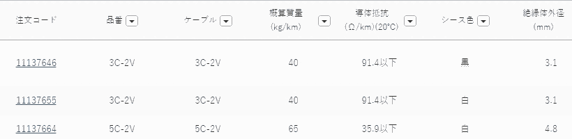 用途屋内への引込線、屋内配線。監視 防犯カメラ。信号回路、高周波機器間の接続。 全長(m)100 耐電圧AC1000V/1分間 材質(シース)PVC 材質(絶縁体)PE 特性インピーダンス75±3(Ω) 静電容量約67(nF/km) 絶縁抵抗(MΩ/km)1000以上 素線数1 材質(導体)AC 内容量1巻