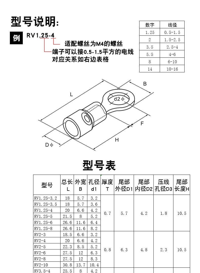 常用型号:RV1.25-3,RVS1.25-3.5,RVS1.25-4,,RVS1.25-5,RV1.25-6,RV1.25-8,RV1.25-10,