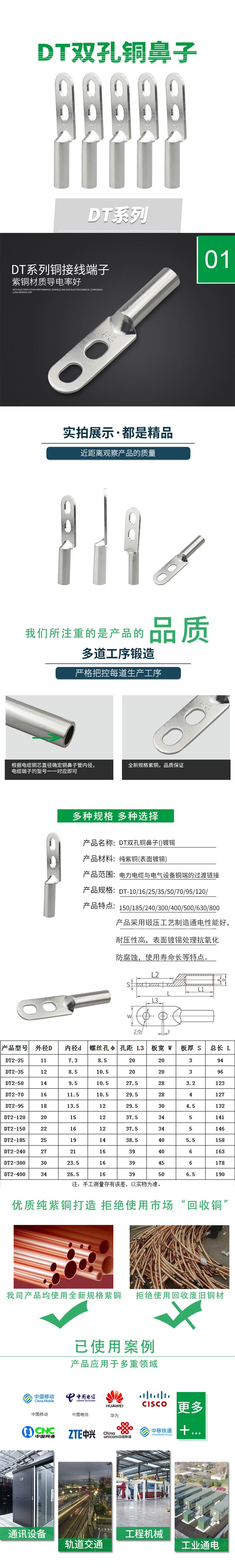 DTS-120平方双孔镀锡铜鼻子