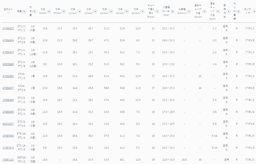 日本霓达NITTA工业用接头ET1/2-PT1/2;ET16-PT3/8