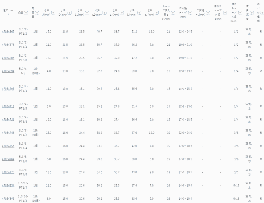 日本霓达NITTA工业用接头EL1/2-PT1/2;EL1/4-PT1/4